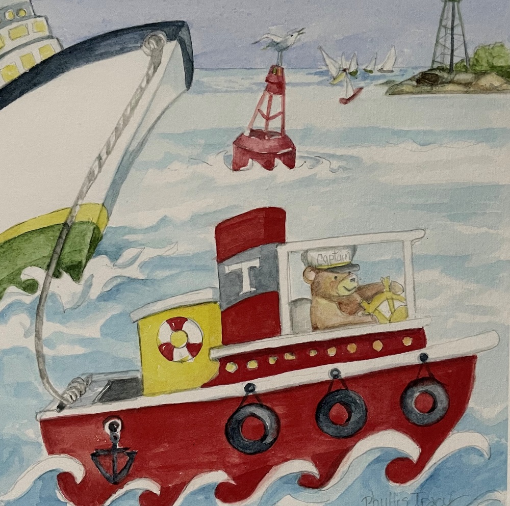 Bear on Tugboat by Phyllis Tracy