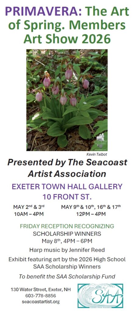 The Seacoast Artist Association is a group of artists and people interested in art, based in the seacoast area of New Hampshire. Our gallery, located at 130 Water Street in downtown Exeter, is open: